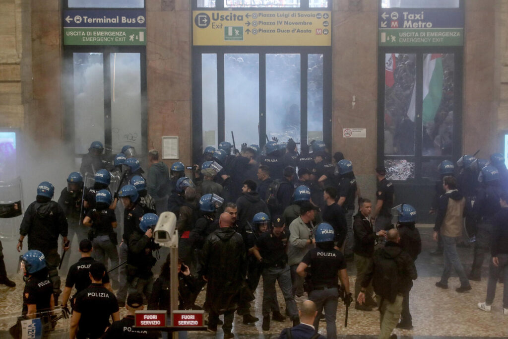 Un folto gruppo di manifestanti violenti ha utilizzato cartelli stradali, cestini e transenne per rompere vetrine e porte di accesso alla stazione. I treni in partenza sono stati bloccati, mentre quelli in transito per oltre un’ora hanno saltato la fermata. La situazione è degenerata all’interno della Stazione Centrale.
