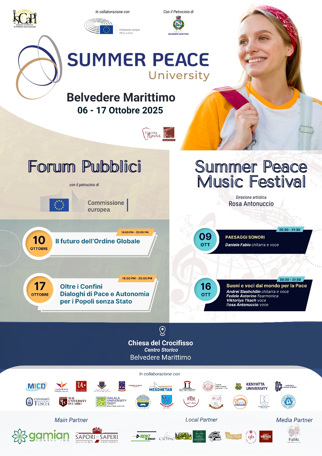 In un’epoca segnata da guerre prolungate, tensioni sistemiche e tecnologie che corrono più della politica, parlare di pace ha senso solo se lo si fa con strumenti concreti. È la sfida raccolta dalla Summer Peace University (SPU), iniziativa internazionale promossa dall’Istituto Calabrese di Politiche Internazionali (IsCaPI), che nel 2024 ha preso forma a Belvedere Marittimo, con il patrocinio del Comune tirrenico, trasformando il borgo calabrese in un campus diffuso: quattro settimane di didattica, laboratori e simulazioni diplomatiche con una rete di studenti e docenti provenienti da quattro continenti.