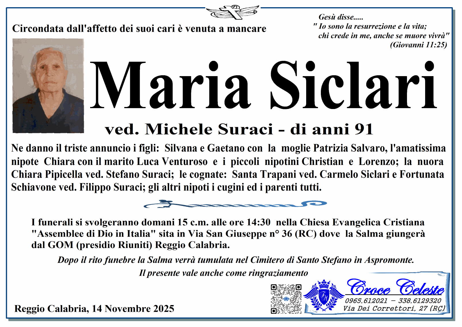 StrettoWeb » NECROLOGI » I necrologi di domenica 16 novembreI necrologi di domenica 16 novembre di Redazione StrettoWeb 16 Nov 2025 | 11:05 Immagine a scopo illustrativo realizzata con l'Intelligenza Artificiale © StrettoWeb Leggi altri articoli di Necrologi