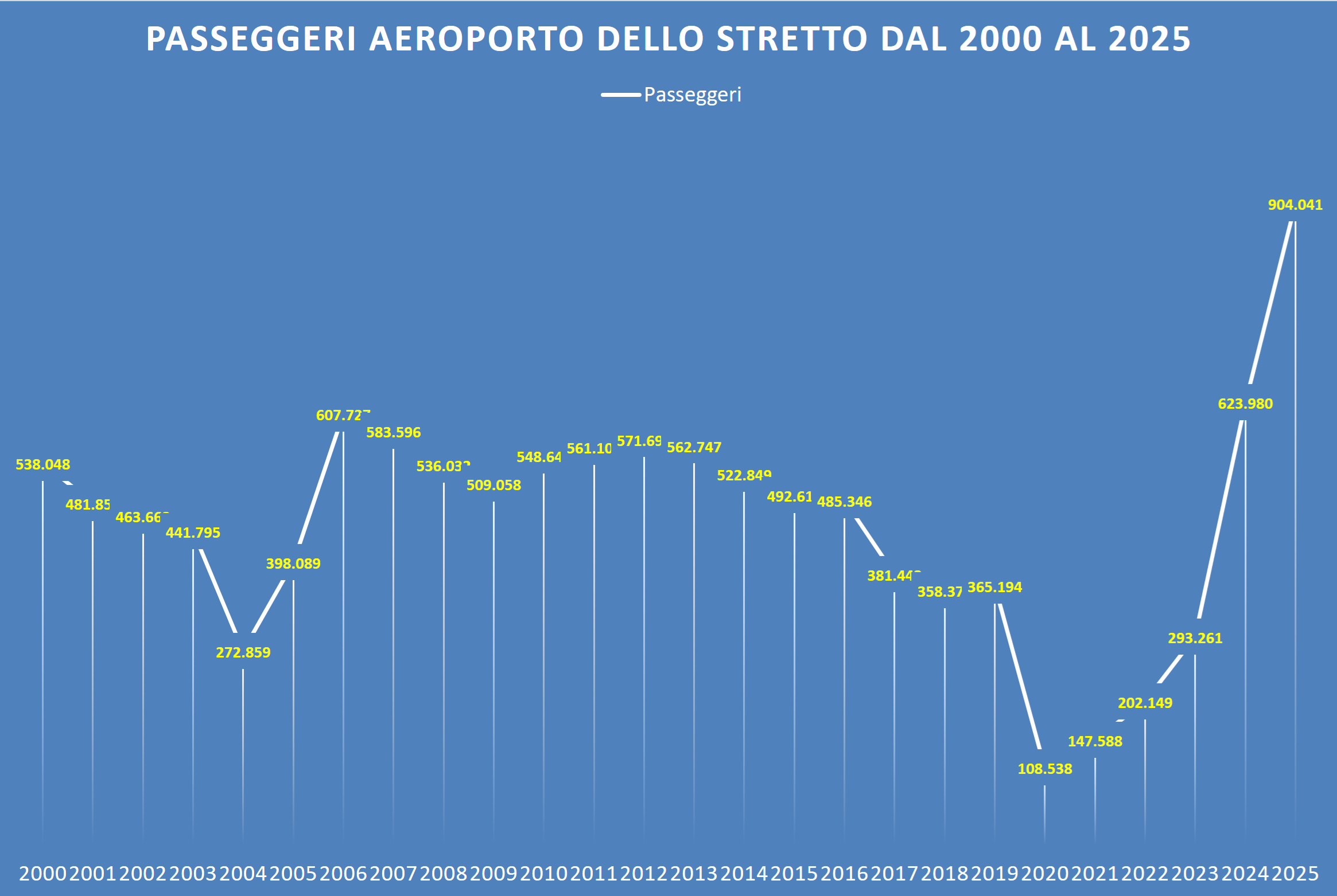 Poche ore fa Assaeroporti, l’Associazione Italiana dei Gestori degli Aeroporti del nostro Paese, ha pubblicato questa mattina dei passeggeri transitati nei 41 Aeroporti d’Italia nel mese di Novembre 2025, aggiornando così anche tutti i parziali progressivi annui con il dato dei primi dieci mesi di questo 2025. In un contesto generale stabile, senza grandi novità, l’Aeroporto di Reggio Calabria si conferma il miglior aeroporto d’Italia in assoluto per crescita in termini percentuali rispetto a un anno fa (+66%), nonostante una leggera flessione mensile. A livello annuo, ha superato i 904 mila passeggeri e chiuderà il 2025 vicino al milione, quasi il doppio rispetto al precedente record storico assoluto del lontano 2006.