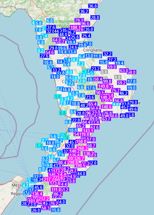 Le piogge delle ultime 48 ore in Calabria: