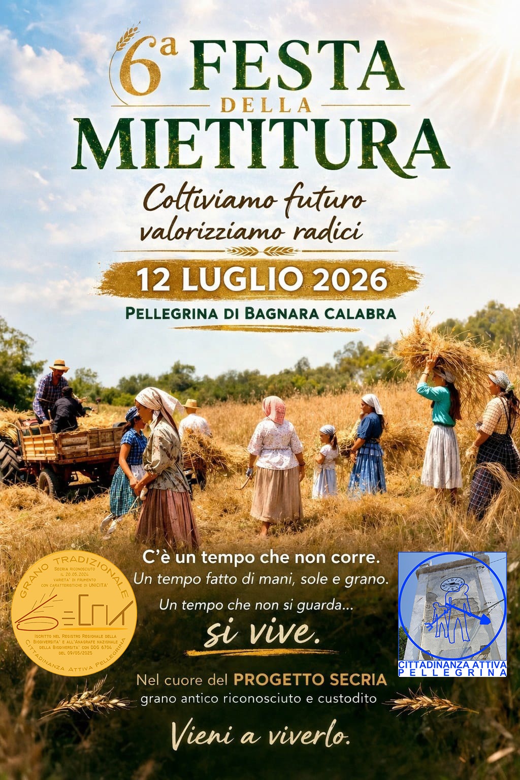 Calabria, si rinnova anche quest’anno a Pellegrina di Bagnara Calabra, l’appuntamento con la 6ª Festa della Mietitura in programma il 12 luglio 2026. Non è solo una rievocazione, ma un’esperienza da vivere. Falce alla mano, i partecipanti potranno entrare nel cuore della tradizione contadina, riscoprendo gesti antichi, il valore della fatica condivisa e il legame profondo con la terra. Un ritorno alle origini che emoziona e coinvolge, capace di rallentare il tempo e restituire significato alle cose semplici ma autentiche.