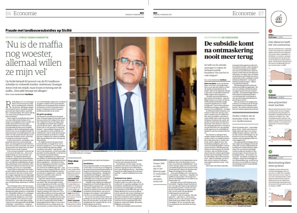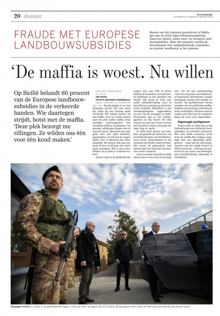 E l’NCR Handelsblad di Amsterdam racconta anche dell’importante operazione Antimafia del 15 gennaio che ha portato all’arresto di 94 persone in 151 aziende agricole sequestrate. “Il Procuratore Maurizio De Lucia ha dichiarato dopo l’operazione – scrive il quotidiano olandese che ha intervistato il Magistrato – che sono circa 10 milioni di euro i sussidi agricoli dell’UE che sono stati incassati dalle famiglie mafiose. Non è chiaro se quel denaro possa ancora essere recuperato, poiché è stato incanalato su conti a Malta, Romania, Bulgaria e Lituania, tra gli altri. Quando Antoci introdusse rigide regole per le concessioni di terreni agricoli nel Parco, secondo il magistrato, attraversò gli interessi della mafia”.